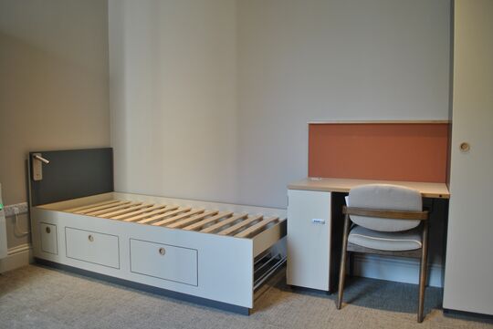 Kollegium, Senger, Skrivebord, Låser, Tøjskap