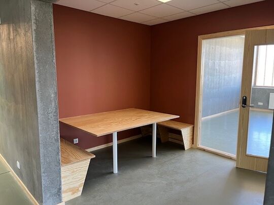 Personalerom, grovgarderober, verksted barnehage i friske farger, Fagrom