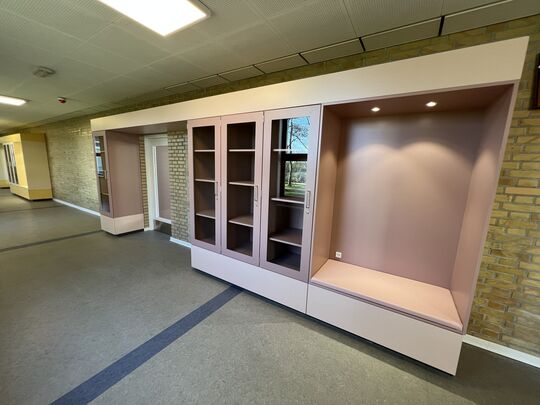 Spesialskole, garderober, skap, rørsofaer, flexsoner, benker og bord, læringstrapper, spesialmøbler. Hercules hengsel